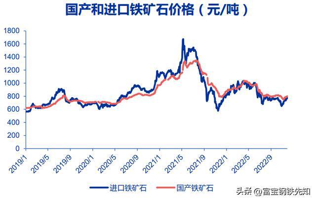 2019-2022國產(chǎn)和進口鐵礦石價格趨勢圖